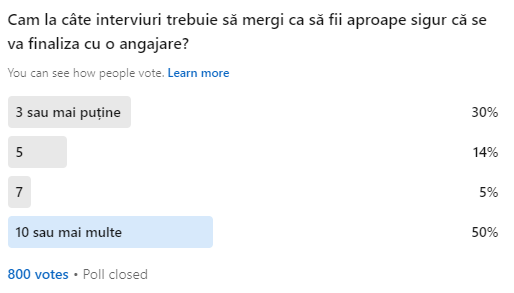 Vedeți mai jos rezultatele unui sondaj pe care l-am pus pe LinkedIn: www.linkedin.com/polls
